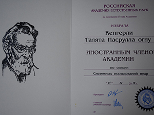 AMEA Neft və Qaz İnstitutunda Geologiya və Geofizika İnstitutu (GGİ) Geotektonika və regional geologiya şöbəsinin rəhbəri Tələt Kəngərliyə Rusiya Təbiət Elmləri Akademiyasının (RTEA) əcnəbi üzvü diplomu təqdim edilib.