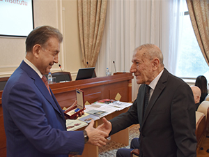Sonra AMEA prezidenti institutun Palçıq vulkanizmi şöbəsinin rəhbəri professor Adil Əliyevin GGİ-nin 80 illik yubileyi münasibətilə dövlət başçısı tərəfindən “Şöhrət ordeni” ilə təltif edildiyini vurğulayaraq, alimə mükafatı təqdim edib.