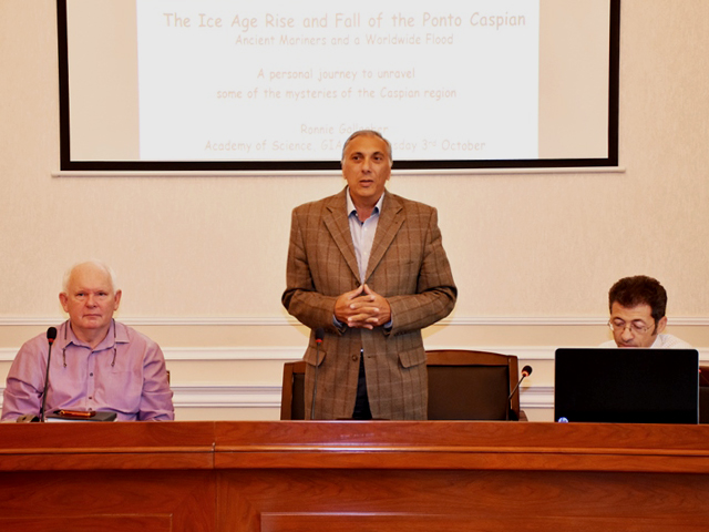 BP-nin sabiq əməkdaşı, müstəqil tədqiqatçı Ronni Qallaher AMEA Geologiya və Geofizika İnstitutu (GGİ) alimləri qarşısında “Xəzərin sahil xətlərinin müşahidəsi, onlardan transqressiyaların və regional geomorfologiyanın, paleodrenaj və biomüxtəlifliyin rekonstruksiyasında indikatorlar qismində istifadə edilməsi” və “Azərbaycanın landşaftında antropomorfik imiclər və onların əhəmiyyəti” mövzularında mühazirə ilə çıxış edib.
