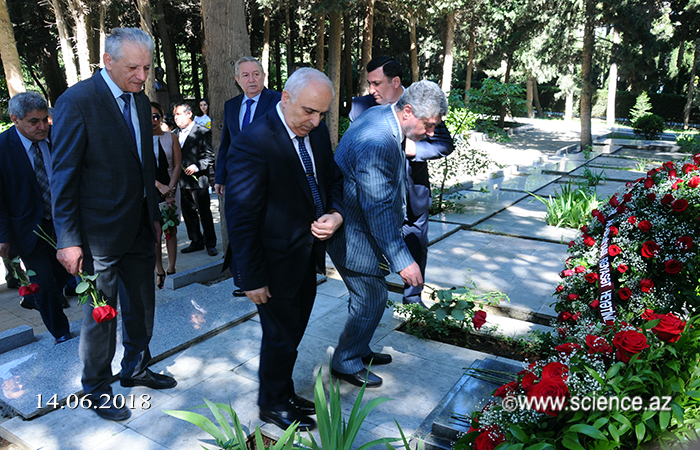 Əvvəlcə tədbir iştirakçıları birinci Fəxri xiyabana gələrək görkəmli alimin əziz xatirəsini ehtiramla yad edib, məzarı önünə əklil və gül dəstələri qoyublar.