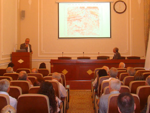 İlk olaraq GGİ-nin Çöküntü hövzələrinin geokimyası və flüid dinamikası şöbəsinin əməkdaşı, geologiya üzrə fəlsəfə doktoru Şahvələd Köçərli və fizika-riyaziyyat üzrə fəlsəfə doktoru Yusif Şıxəliyev tərəfindən hazırlanmış “Miosen çöküntülərində neft axtarışları ilə əlaqədar məhsuldar qat və altdakı komplekslər arasında struktur əlaqə haqqında” mövzusunda məruzə dinlənildi. Ş.Körçərli çıxış edərək bildirdi ki, aparılmış tədqiqatlar Azərbaycan neft təsərrüfatının aktual məsələsinə miosen-oliqosen çöküntülərində neft yataqlarının axtarışı probleminə həsr edilib. Çoxsaylı ədəbiyyat və son illərin quyu və seysmik məlumatlarına əsaslanaraq miosen çöküntüləri üzrə perspektivli zonalar ayrılıb, Ceyrankeçməz depressiyasında, Abşeron yarımadasında və müvafiq dəniz akvatoriyalarında əvvəlki illərin şariyaj tektonikası konsepsiyasından fərqli olaraq, əsasən sakit, irsi və ya uyumlu struktur modelin mövcudluğu sübut edilib və bunun gələcək kəşfiyyat işlərində nəzərə alınması tövsiyə olunub.