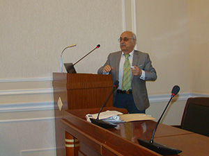 Təbriklərin ardınca D.Hüseynov iştirakçıları iclasın gündəliyindəki məsələlərlə tanış etdi. İlk olaraq Seysmostratiqrafiya şöbəsinin rəhbəri akademik Pərviz Məmmədovun “Cənubi və Orta Xəzər hövzələrinin regional seysmostratiqrafiyası” mövzusunda məruzəsi dinlənildi. Natiq bildirdi ki, çoxillik geofiziki və seysmostratiqrafik tədqiqatlar nəticəsində Cənubi və Orta Xəzər hövzələrinin dərinlik quruluşu, paleotektonikası, paleocoğrafiyası, geodinamiki təkamülü və neft-qaz perspektivli çöküntü kompleksləri haqqında çox maraqlı elmi nəticələr alınıb. Plitələrin tektonikası konsepsiyasına əsasən riftogenez və spredinq nəticəsində Cənubi Xəzər hövzəsinin açılması və Uilson tsikli ərzində formalaşması, onun konsolidə olunmuş qabığının okean tipli olması və Skif-Turan platforması altına subduksiyası haqqında təkzib olunmaz faktiki məlumatlar toplanılıb.