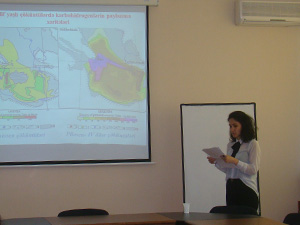 İnstitutun gənc alim və mütəxəssislərinin iştirakı ilə keçirilən seminarda Geoekologiya şöbəsinin böyük laborantı, Azərbaycan Dövlət Neft və Sənaye Universitetinin II kurs magistri Lalə Məmmədova məruzə ilə çıxış edib. Gənc mütəxəssisin mövzusu "Cənubi Xəzər hövzəsində karbohidrogenlərin paylanma xüsusiyyətləri (Şimali Abşeron qalxımları timsalında)" mövzusunda” mövzusu ilə əlaqədar olub.