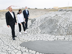 Prezident İlham Əliyev və birinci xanım Mehriban Əliyeva vulkanların yerləşdiyi ərazini gəzdilər.