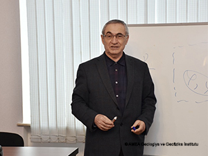 Təcrübəçi tələbələr və onların rəhbəri - BDU-nun müəllimi Ruqiyə Hüseynova GGİ “Tektonofizika və geomexanika” şöbəsinin rəhbəri akademik Hətəm Quliyev ilə görüşüblər. Akademik H.Quliyev hazırda elm aləmində baş verən mühüm yeniliklər barədə danışıb, tələbələrə dəyərli tövsiyələr verib. Həmçinin bildirib ki, istehsalat təcrübəsi tələbələrin nəzəri biliklərinin praktikada tətbiqi, onlarda elmi tədqiqat işlərini sərbəst şəkildə yerinə yetirmək vərdişlərinin formalaşdırılması məqsədi daşıyır. Ali təhsil müəssisələrində təhsil alan tələbələrin elmi-tədqiqat institutlarında elmi-istehsalat təcrübələrinin keçmələri elm və təhsilin inteqrasiyası sahəsində əməkdaşlığın genişləndirilməsində və yüksək ixtisaslı kadrların hazırlanmasında çox vacib addımdır.