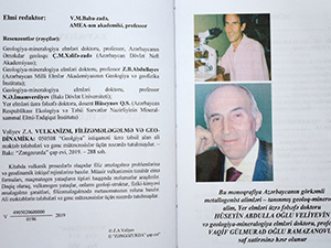 Zəki Vəliyevin ”Vulkanizm, filizəmələgəlmə və geodinamika” monoqrafiyasının elmi redaktoru AMEA-nın akademiki, professor V.M.Babazadədir.