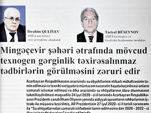 AMEA-nın vitse-prezidenti akademik İbrahim Quliyevin və Geologiya və Geofizika İnstitutunun əməkadaşı Tariyel Hüseynovun “Mingəçevir şəhəri ətrafinda mövcud texnogen gərginlik təxirə salinmaz tədbirlərin görülməsini zəruri edir” elmi məqaləsi “Elm və həyat” jurnalının son nömrəsində dərc edilmişdir. Məqalə ölkənin təhlükə potensiallı obyektlərin sırasına daxil olan, eyni zamanda strateji əhəmiyyətli dövlət obyektlərinin (Mingəçevir SES AzDRES) yerləşdiyi Mingəçevir şəhər ərazisinin mövcud texnogen təhlükələrlə bağlı problemlərə həsr olunub.